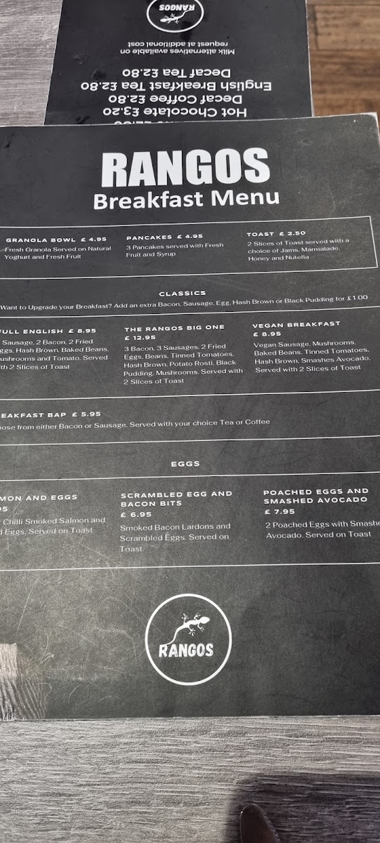 Welcome to Rango s, a vibrant culinary gem nestled in Joicey Square, Stanley. This restaurant not only celebrates food but elevates it into an art form. From the moment you step inside, the warm ambiance embraces you, setting the stage for an unforgettable dining experience. Rango s’s menu is a delightful tapestry of flavors, featuring classics like The Rango's Big One and generous breakfast offerings, including a hearty Vegan Breakfast. Their sides, such as crispy Onion Rings and Sweet Potato Fries, are perfect accompaniments.